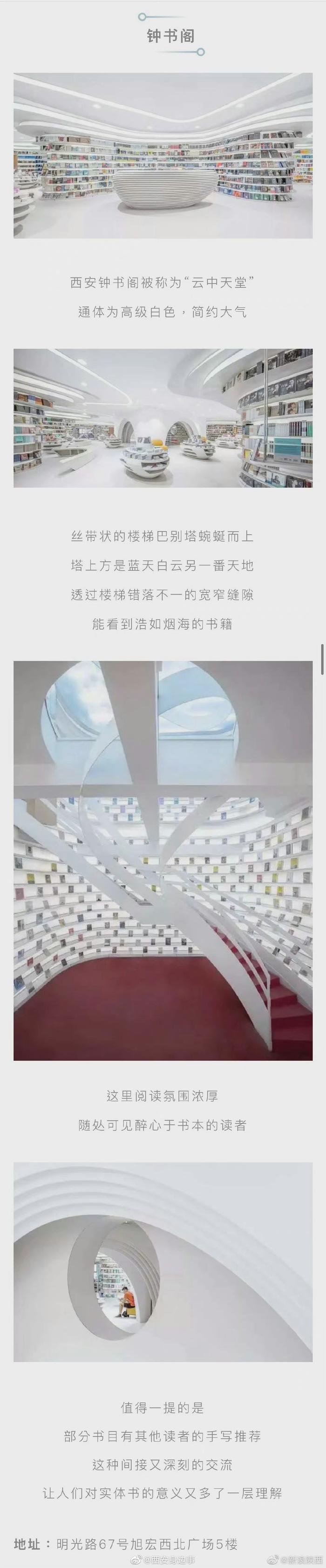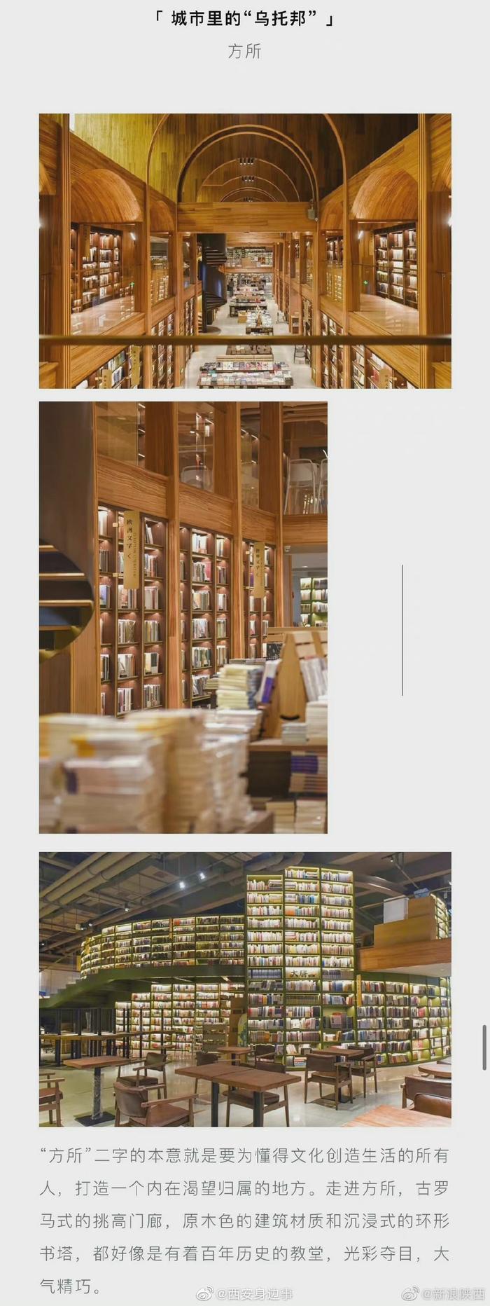 】西安的书店非常多,有众多老牌书店也有新兴的网红书店。书店,蕴藏着一座城市最浓厚的文化氛围。西安这些极具风格的书店,也值得你专程打卡。钟楼书店、茑屋书店、上海三联书店、蓝海风·漫巷、曲江书城......来看看你去过几家?#西安书店推荐#(via.公众号“陕西忒别忒 ”、“ 西安饭饭”、“西安文旅之声”)