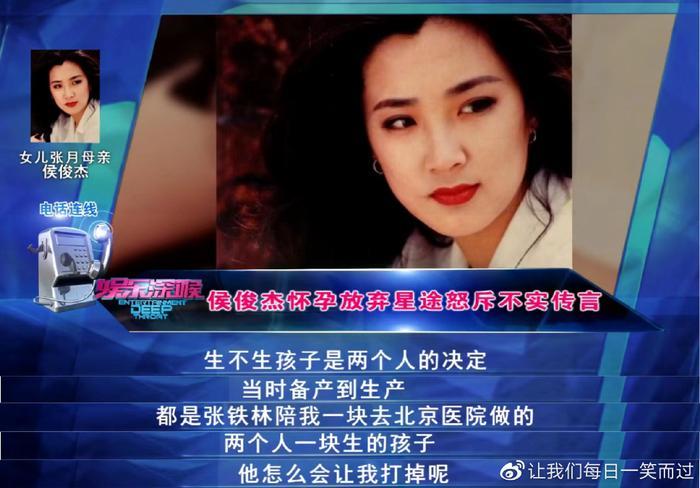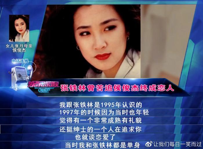 侯俊杰和张铁林恋爱了3年之久,在25岁未婚的情况下为他生下一个女儿。