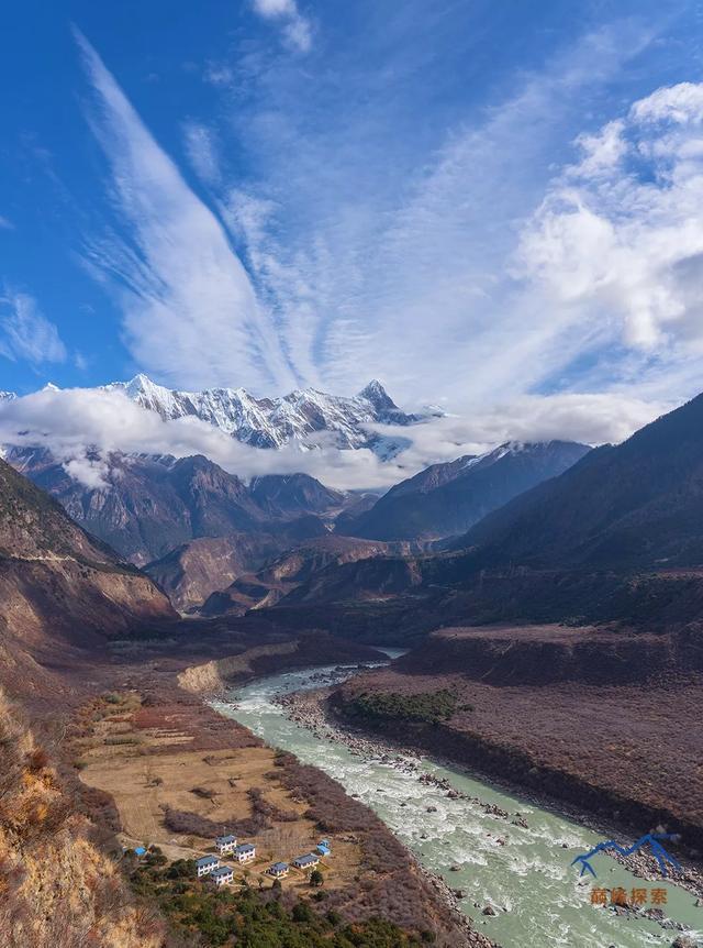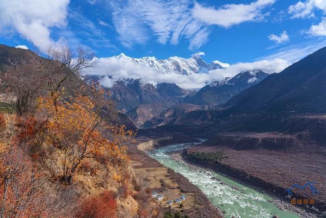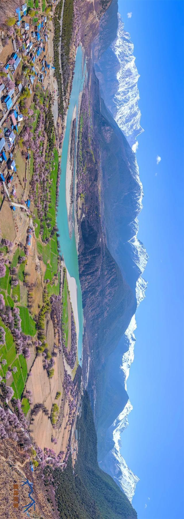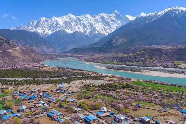 吞白村,南迦巴瓦和雅鲁藏布↑