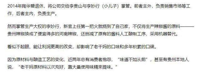 老干妈不存在质量问题,但不用贵州辣椒,确实导致口味变了。