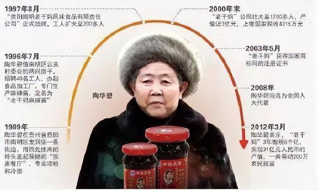 此时的陶华碧已经49岁,干妈老了,因此企业取名为老干妈。