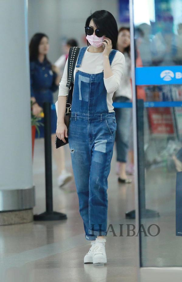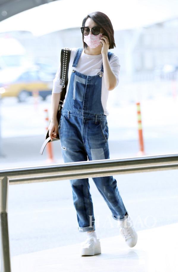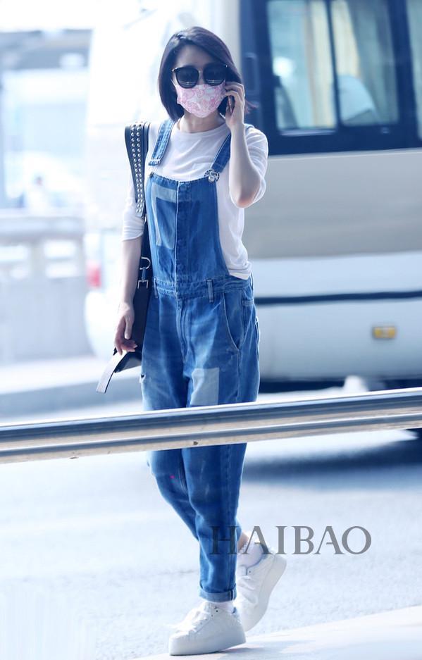 白Tee与背带裤穿好了绝对是减龄利器,许晴这一身算得上是一个还不错的示范,来一双小白鞋虽然鞋子有点笨重但整体效果是赞的。