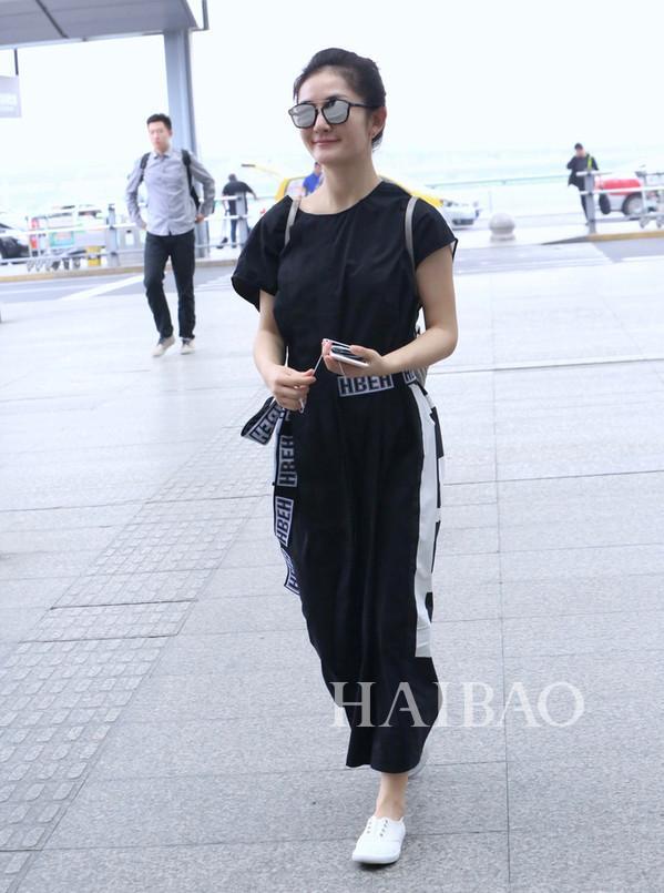 娜姐这次和杰哥一同穿小白去机场顺便秀个恩爱,可娜姐黑色连身裤虽说有收腰的腰带设计,可丝毫不显腰身反而衬得臃肿了。