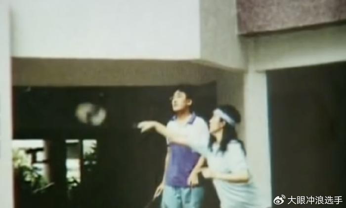 年轻时的窦文涛与许戈辉,饭后在打羽毛球