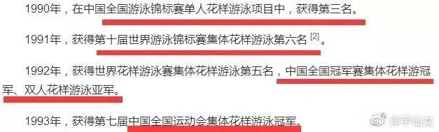 同年,她还获得了第六届全国运动会花样集体游泳亚军。