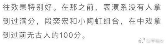 大二的时候,老师还给她的表演作业打了中戏历史上至今为止唯一的100分。