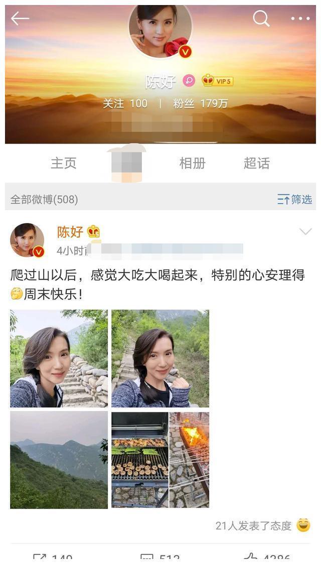随后陈好晒出自己去爬山的照片,还在山上吃起了烧烤。