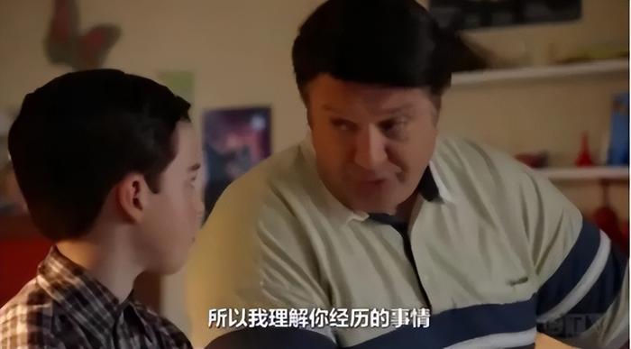 等小谢尔顿发泄完,他父亲走到他身边,跟他分享同样糟糕的经历。