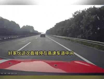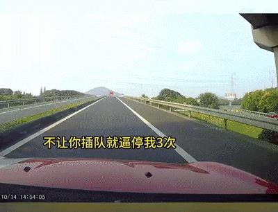 然后强制性把红色轿车逼停,逼上了紧急车道还是没有放过的意思。