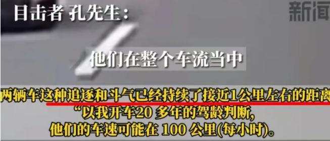两车当时时速在100以上,可能是因为抢道斗气所致,追逐了有一公里以上。