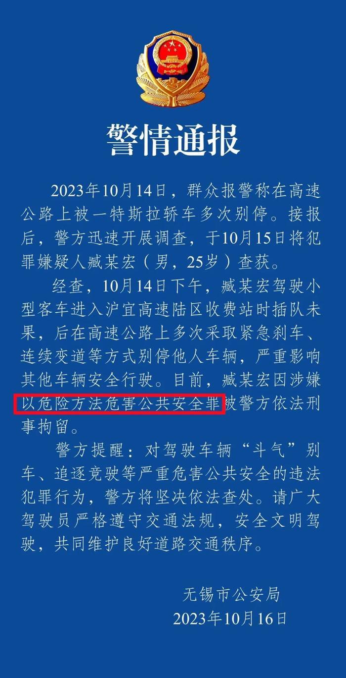 第二天,特斯拉驾驶员因涉嫌危害公共安全罪被刑事拘留!