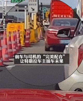 他和前方的宝马车主打了一波完美配合,没有给特斯拉车主半点插队机会。