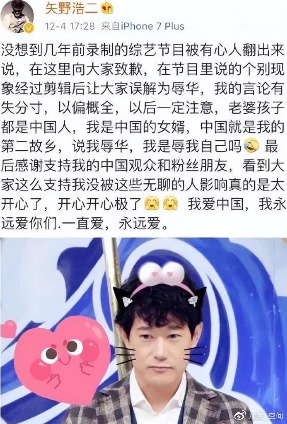 面对网络上的口诛笔伐,矢野浩二急忙表达歉意,并且表示,自己几年前发表的言论,竟然也被有心之人翻出来,他自己也是感到不可思议的。