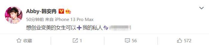 而且就包括这次,韩安冉在宣布离婚之后,引起了不少网友的讨论,于是,她马上又发了一条微博给自己打广告......