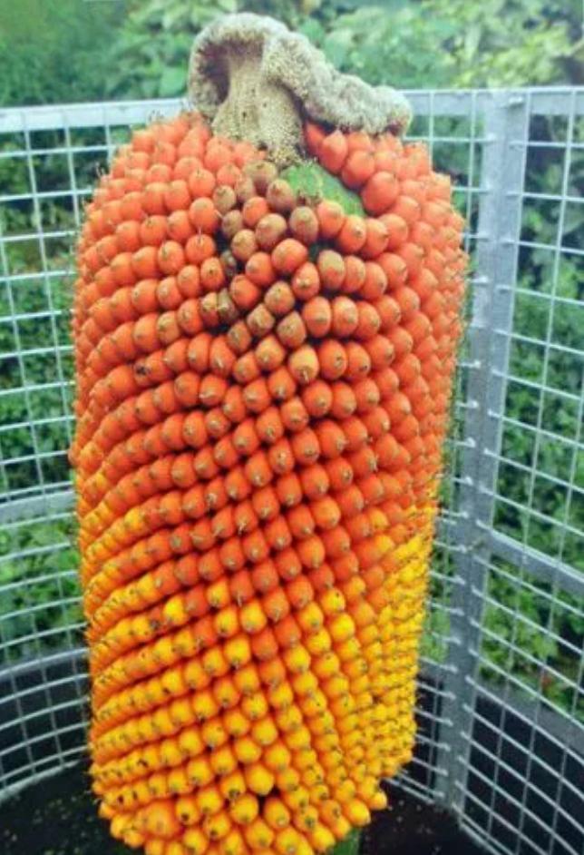授粉之后,尸香魔芋的雄蕊就会开始发育成红色的果实,果实成熟之后,尸香魔芋还需要一种动物的帮助“马来犀鸟”。