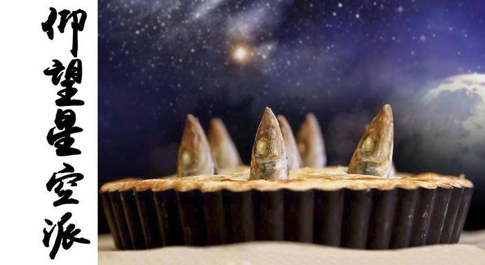 仰望星空是英国的一道黑暗料理,主要材料有纯面粉、沙丁鱼、盐、胡椒、洋葱末、鸡蛋等。以下是烹饪步骤:1. 首先把面团揉成两张shortcrust pastry,把一张平铺在盘子里,四周点上水。2. 烤箱6档,先预热200C (400F) 。3. 清理鱼骨、内脏什么的,把头留下啊!4. 撒上洋葱沫和香菜末。5.把鱼放在面皮上,记得一定要头朝上,要让这些“可爱”的脸庞“仰望星空”。。。6.有空隙的地方放上煮好的鸡蛋和培根。7.将另一张面皮盖在上面,压实,在表面刷上蛋液。8.放入烤箱烤30分钟;如果鱼比较大只的话,30分钟之后再用4档,180C (350F)的温度烤15分钟。菜谱最后还建议趁热品尝!
