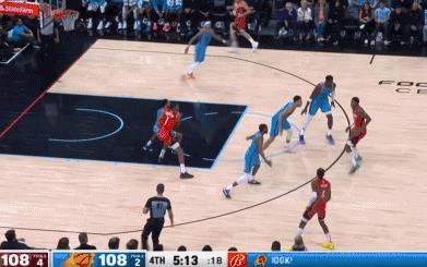 佩恩上篮,伊森补篮;佩恩三分101-88又领先13分,波特造犯规两罚,而后弧顶一对一面对佩恩后撤步三分,再助费尔南多重扣,伊森强吃沙梅特上篮,费尔南多再补篮,99-106,火箭追至7分分差,塞拉斯第一次换人时刻降临。