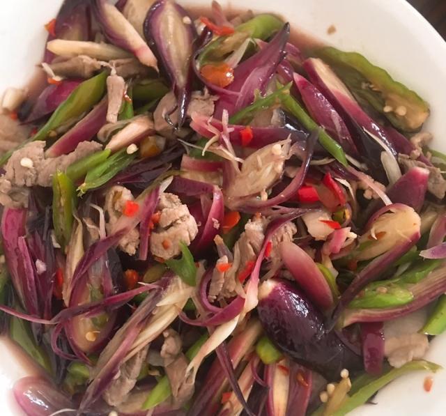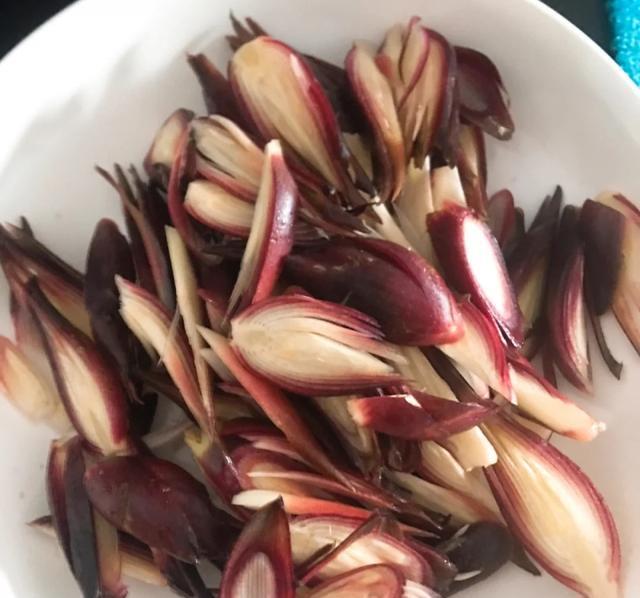 味道清甜,药食同源阳荷的生命力极其顽强。不用人们刻意的栽培,也不需要人们对它过多的照顾和保护,就能生长的十分茂盛。又被称为“懒人菜”。并且阳荷具有很强得抗击病虫害得能力,不需要施加农药。所以它绝对是纯天然无公害的绿色食品。阳荷全身都是宝。在春天我们可以吃它的嫩芽,夏天可以吃它的花朵,到秋天又可以吃它的茎块儿。阳荷长得非常的像洋葱,味道清新香甜,用阳荷炒腊肉,那简直是绝配。