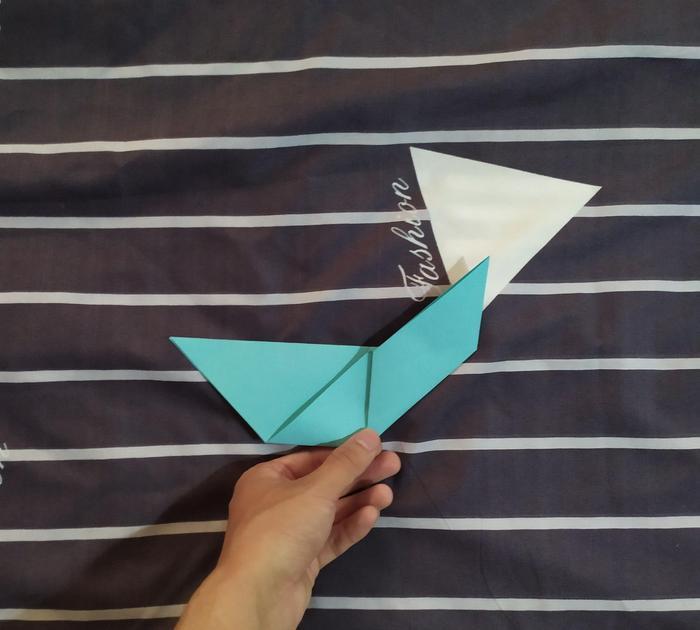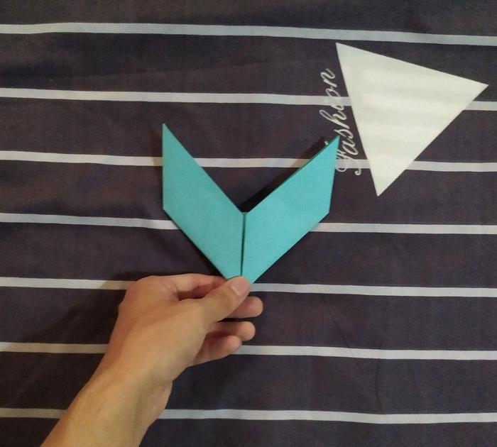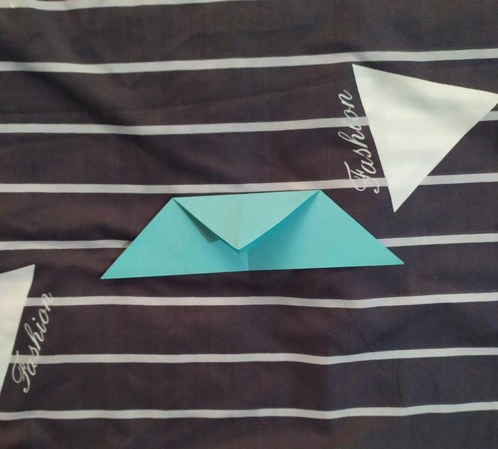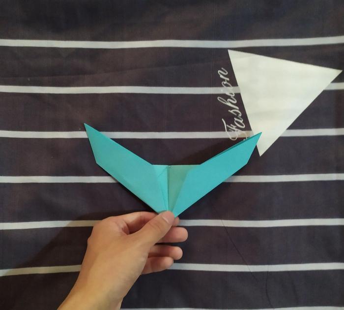 还记得我们的那条参考线吗?我们先把手中的彩纸倒过来,然后把右右侧的底边折到参考线的地方。
