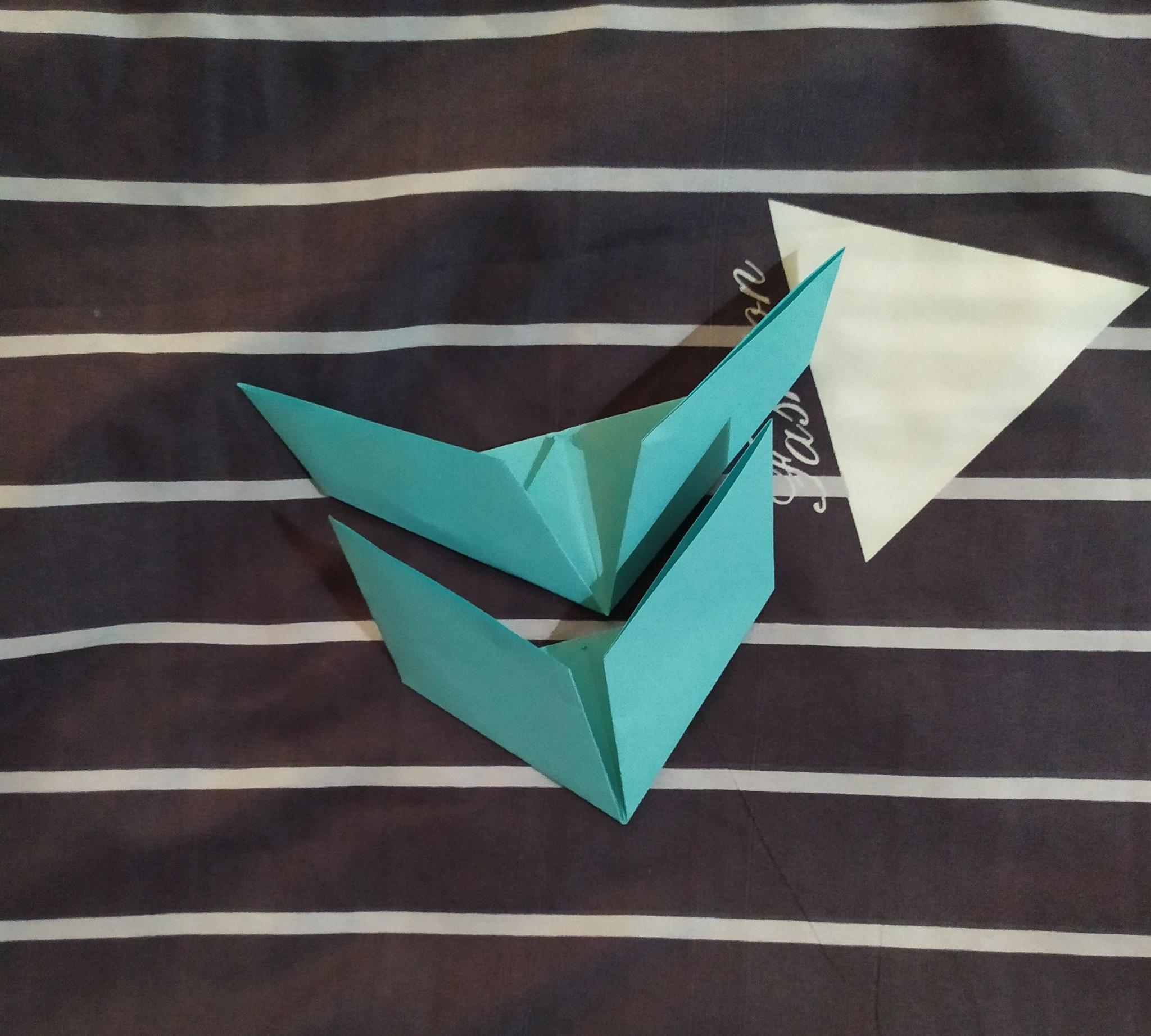 我们还可以把这个三角形变更小,发挥你的想象力,想一想怎样折成这个样子吧。小小提示一下,这里也需要我们进行对折。