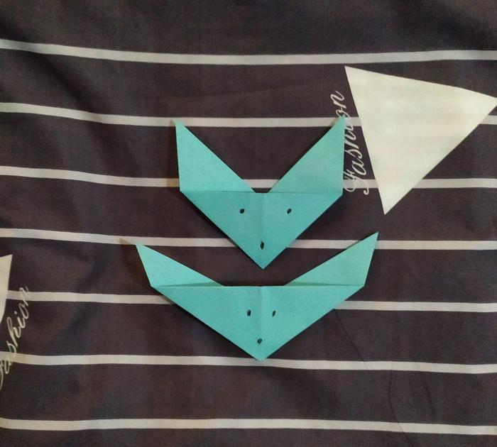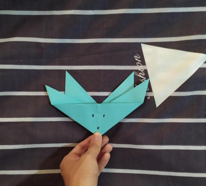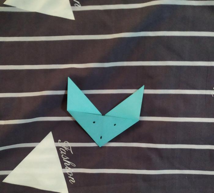 耳朵也折好了,只需要为小狐狸加上它的眼睛鼻子了。