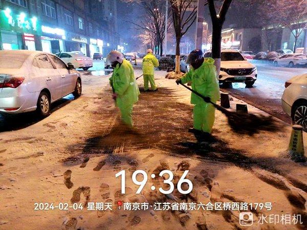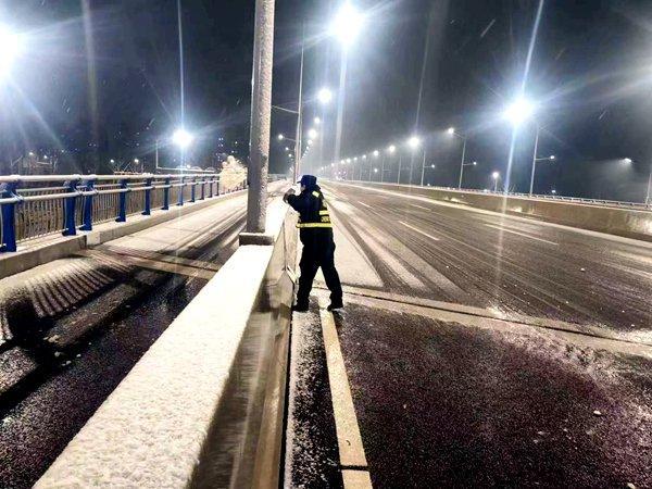 溧水区等城管队员均根据扫雪防冻工作要求,对辖区内桥梁、坡道等重点路段进行作业,保障道路畅通,行人车辆出行安全。