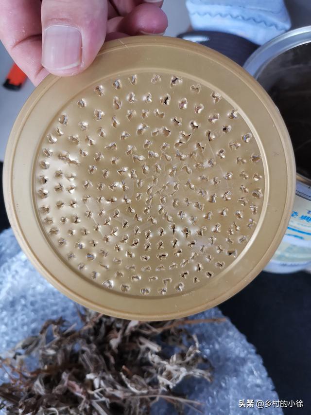 第一步:用奶粉罐做一个简易的蚊香架,在罐子中间偏上的部位钻一圈小孔,用细铁丝对穿,穿成网格状,奶粉盖上戳出一些小孔,简易的蚊香架就做好了。