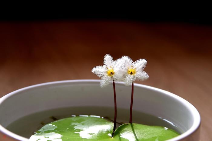 一叶莲属于整体花期长,单朵花期短的花卉,一朵开完另一朵继续,甚至几朵一起开,比较优雅,这种小清新的花卉非常适合在家里摆上一盆,上面花开似锦,下面鱼虾成群,而且价格也很便宜,很值得拥有。