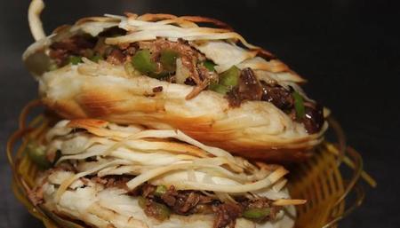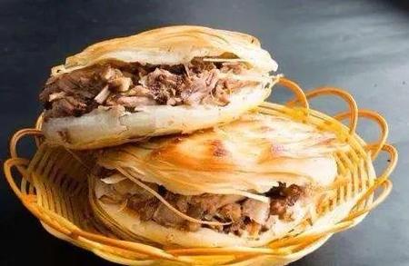 2.肉夹馍,这也是西安特色,这个肉夹馍是用秘制的腊汁肉做肉馅,现烤的饼子来夹馍,趁热吃,饼香可口,肉肥而不腻,真是满口留香。