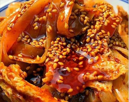 3.宝鸡擀面皮,这是宝鸡当地的一种特色凉皮,面皮柔软筋道,有嚼劲,加上油泼辣子,真是色香味全。