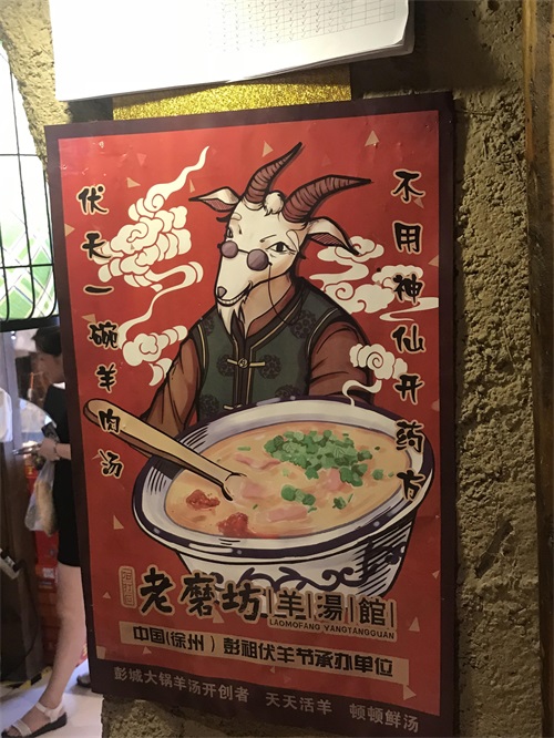从每年夏季的入伏开始,以徐州为中心的苏鲁豫皖接壤地区就有夏季吃“伏羊”的民俗传统。据不完全统计,仅徐州一市在伏羊节期间就有超过10万只羊被吃掉。因此入伏以后,在徐州大街小巷的羊肉馆,都能看到“伏天一碗羊肉汤,不用神医开药方”的宣传语。
