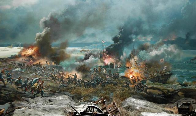 威海卫位于山东半岛东北部,遥对旅顺、大连,港口呈新月形,港湾环抱着刘公岛。岛上和港湾南北两帮都设有炮台,与港内舰队互相配合,可形成立体交叉的强大火力,足以对付海上来的强敌。但是,如果岸上炮台失守,则会形成对港湾和刘公岛南北夹击的形势。1895年1月20日,日军为避开从威海港正面进攻,从威海卫南边的荣成湾成山角登陆,由陆路抄袭威海卫之背,日海军从海上封锁威海卫。躲在港内的北洋舰队腹背受敌。接着,日军攻占南北两帮炮台。日军占领炮台后,把大炮转向港内,轰击北洋舰队。日海军于2月3日向刘公岛和北洋舰队发动进攻,中国将士英勇抗击。