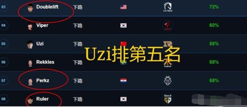 然后就是被呼声最高的世界第一ADCUzi了,Uzi的表现和成绩,都可以配得上这世界第一ADC的称号了,同时他也是LPL的骄傲,尽管在世界赛上,还有很多世界级的ADC选手,都承认Uzi是最强的ADC,不过这一次RNG没能夺得夏季赛冠军,Uzi也排在了第五名,不过也是一个很好的成绩了,总比被官方毒奶强!