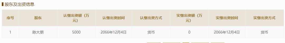 随时约主体运营公司为约到文化发展(广州)有限公司,成立于2017年11月16日,法人代表陈大朋,注册资本5000万元,实缴资本为0,股东实缴出资时间为2066年,也就是47年后才会落实实缴金额。
