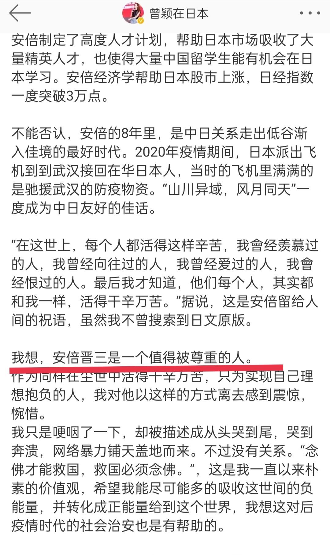 其实李淼的这篇悼念文章也写得很理性,并没有过分夸大个人感受,也没有特别赞扬安倍的功绩等等。