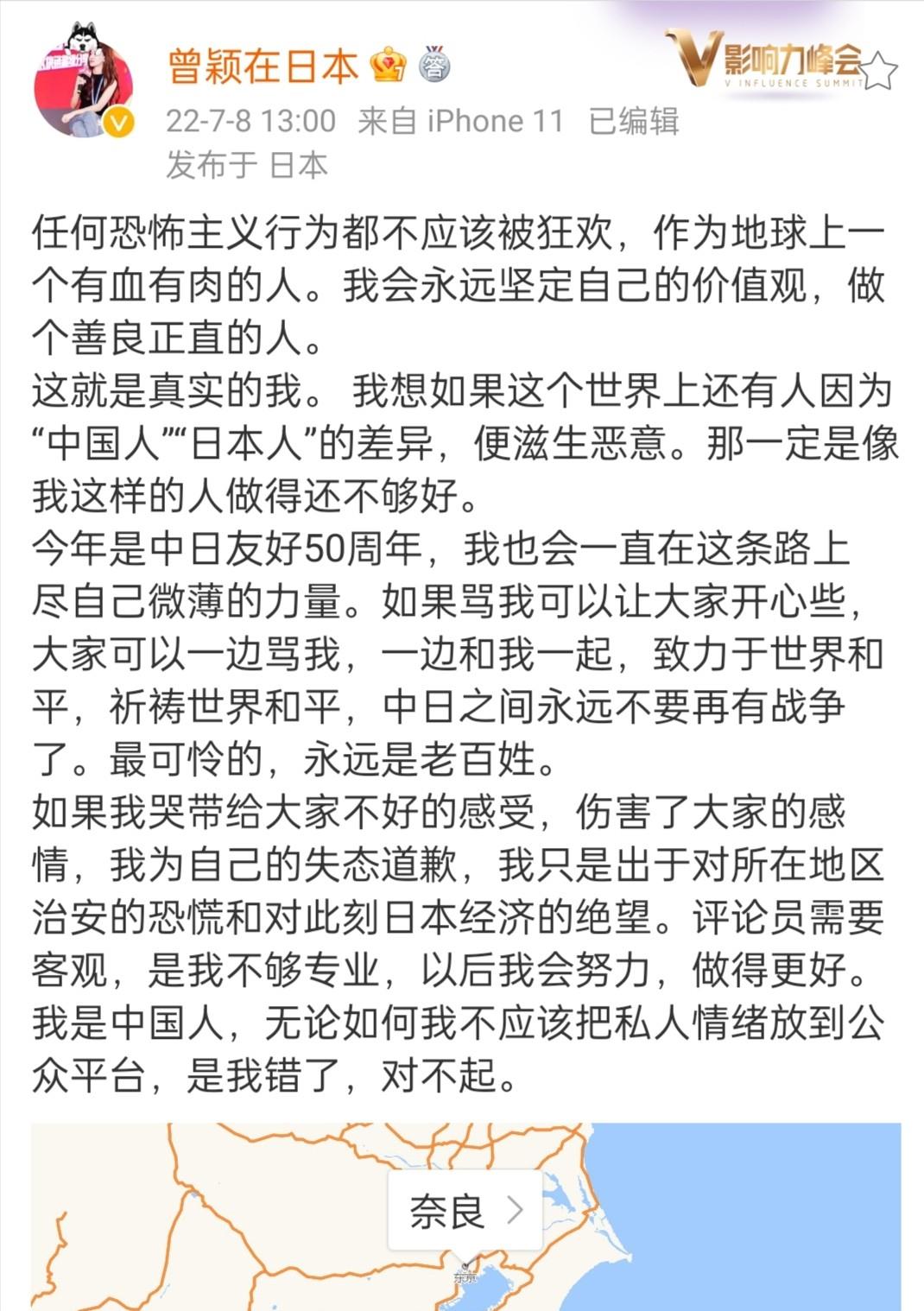 这不,日本新闻评论员曾颖走得更远:“作为一个生活在地球上的人,任何恐怖行为都不应该被纵容,作为地球上一个有血有肉的人。我会一直坚定自己的价值观,做一个善良正直的人。这才是真正的我。”