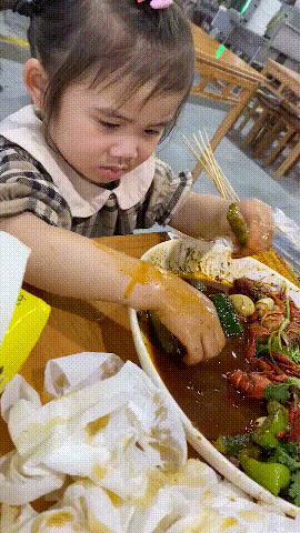 吃饭别玩手机,你不懂吗,都吃到我碗里来了