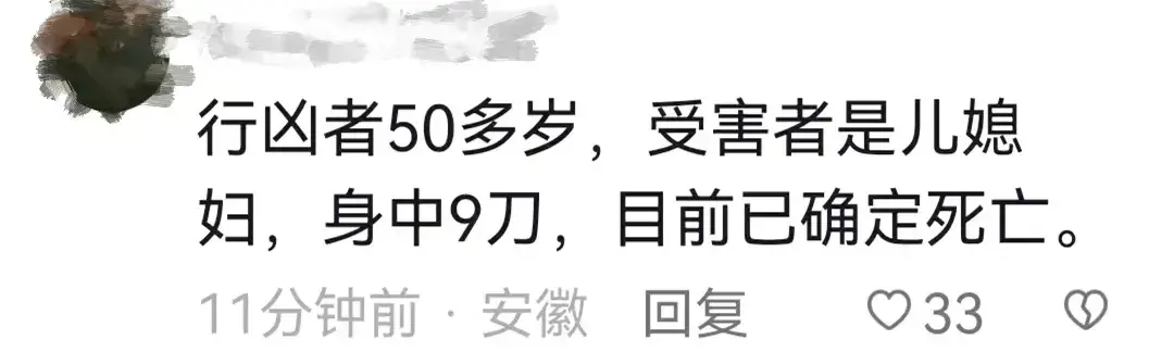 据了解,杀人凶手是一名50多岁的男人,与被害者是公公与儿媳妇的关系。