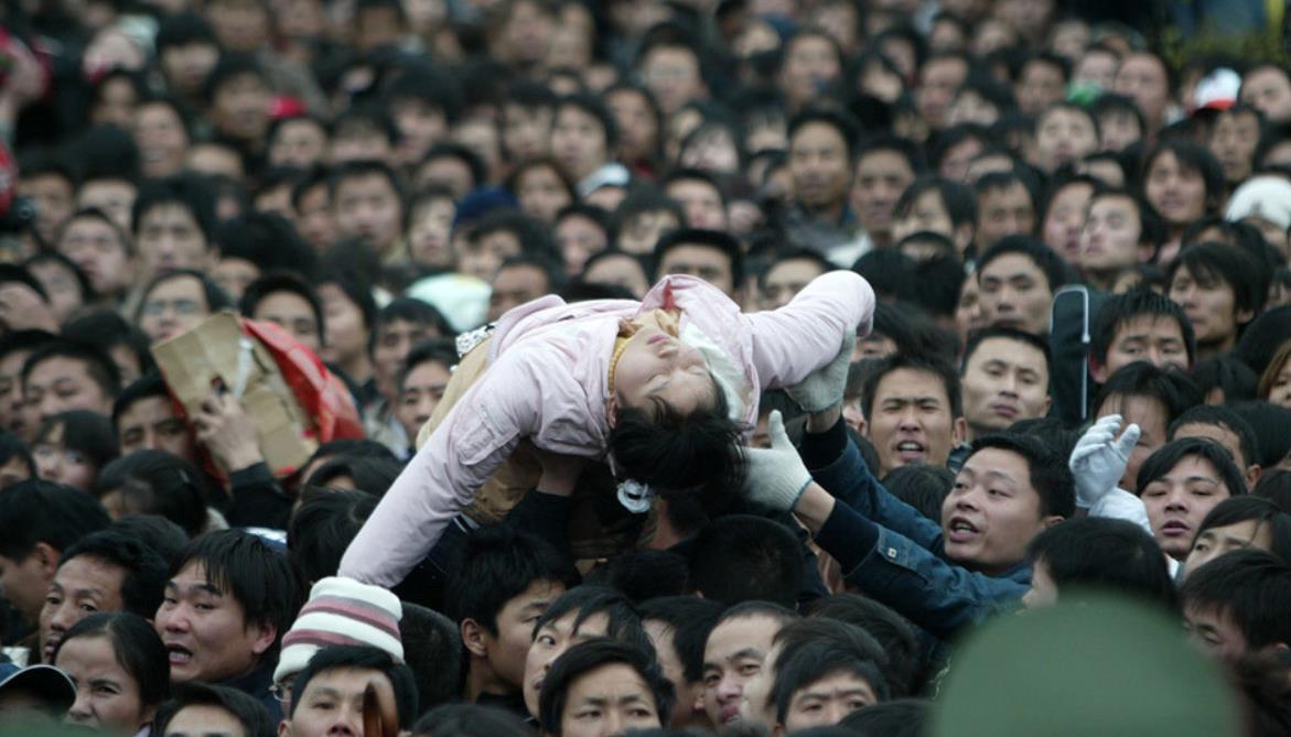 这场史无前例的火车站拥堵,已经持续了6天,有人没领到物资,最终在拥挤和空气不流通的环境下晕倒,此时,人们团结一心,把需要救治的人高高举起,从人群中间运到外围救治。