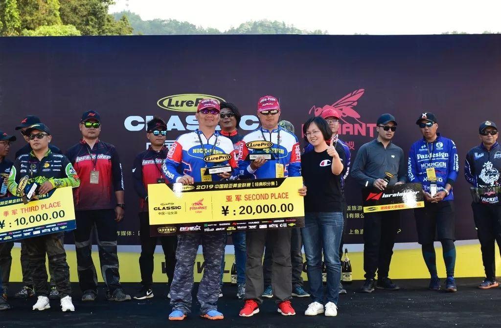 最终经过3天21小时角逐,夏利俊、葛斌组合凭借着三天的强势领跑,最终以三天总重31.04公斤捧起了2019赛季“飞蚂蚁杯”LUREPRO经典积分赛首场冠军奖杯,同时赢取75000元现金奖励。(新赛季只要使用亿万华路亚艇的钓手获奖,将会有50%的额外奖金。另外,使用自由星路亚艇现场可以领取1000元参赛补贴。)