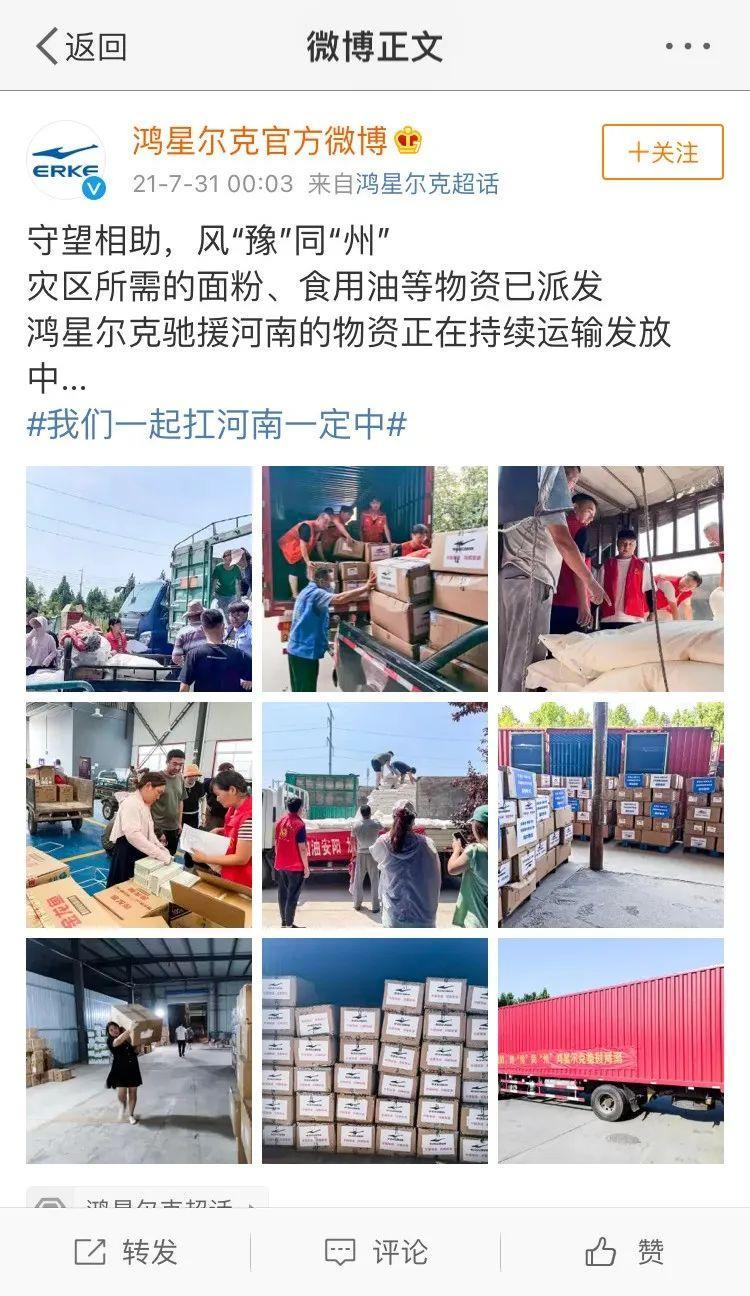 缘起河南救灾,业绩远不及李宁安踏等头部体育品牌的鸿星尔克,在捐款上却毫不吝啬,一下拿出的就是5000万物资驰援河南。