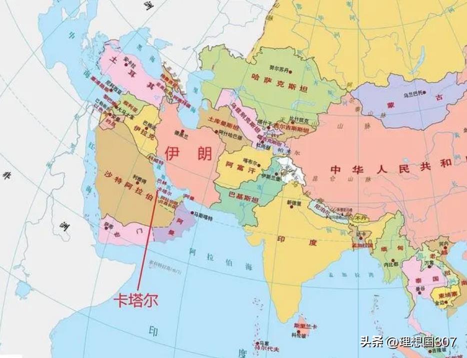 卡塔尔在中东位置示意图
