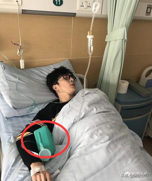 薛之谦病床上抱尿壶。