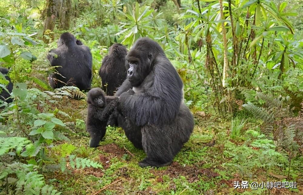 山地大猩猩,现在处于一个极度濒危的状态,全世界的总数不过800多只,绝大部分都生活在如今的卢旺达境内。