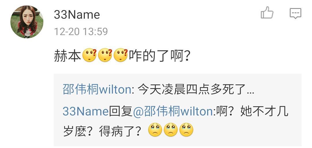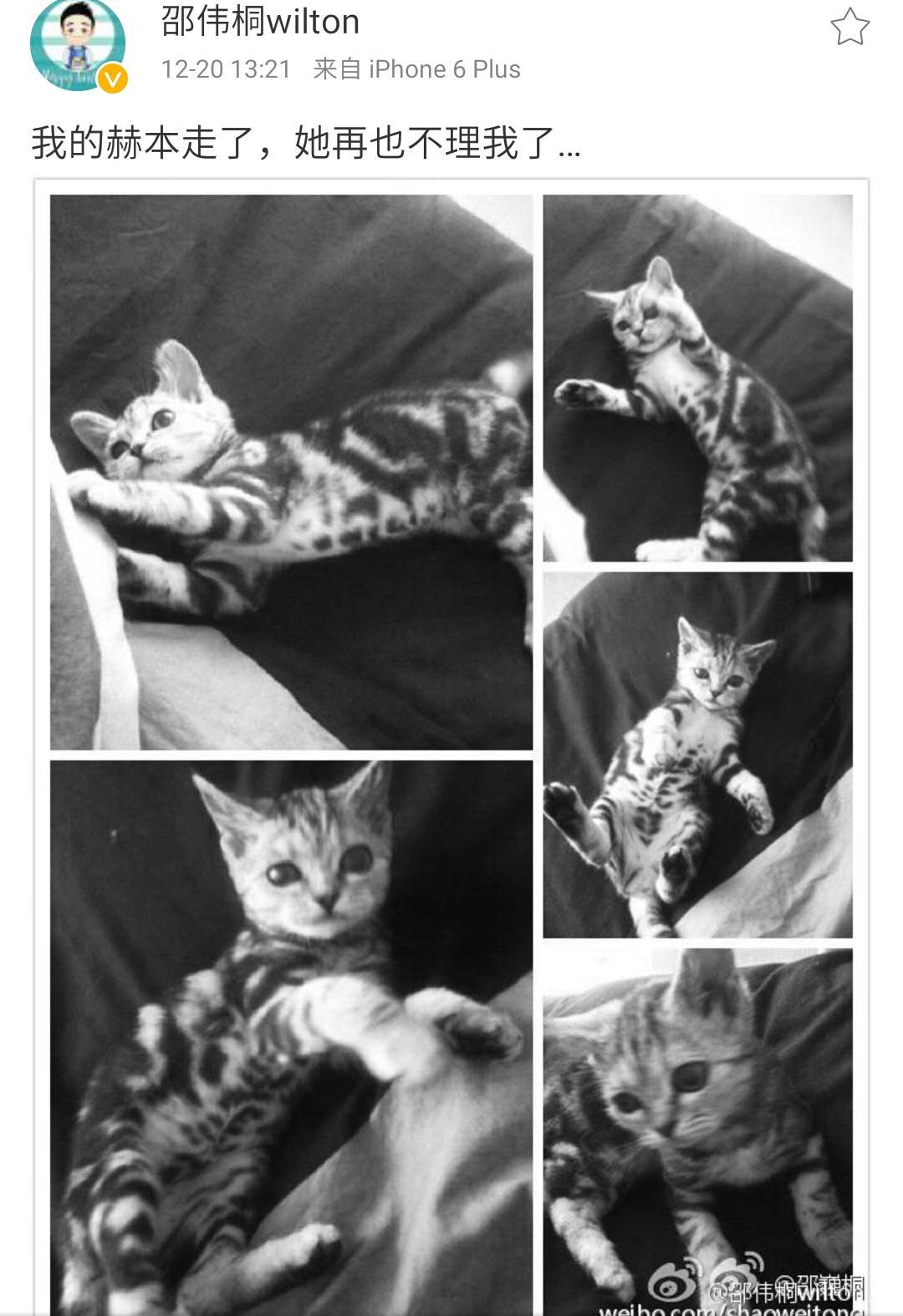 而邵伟桐也异常伤心的发了微博:“我的赫本走了,她再也不理我了……”