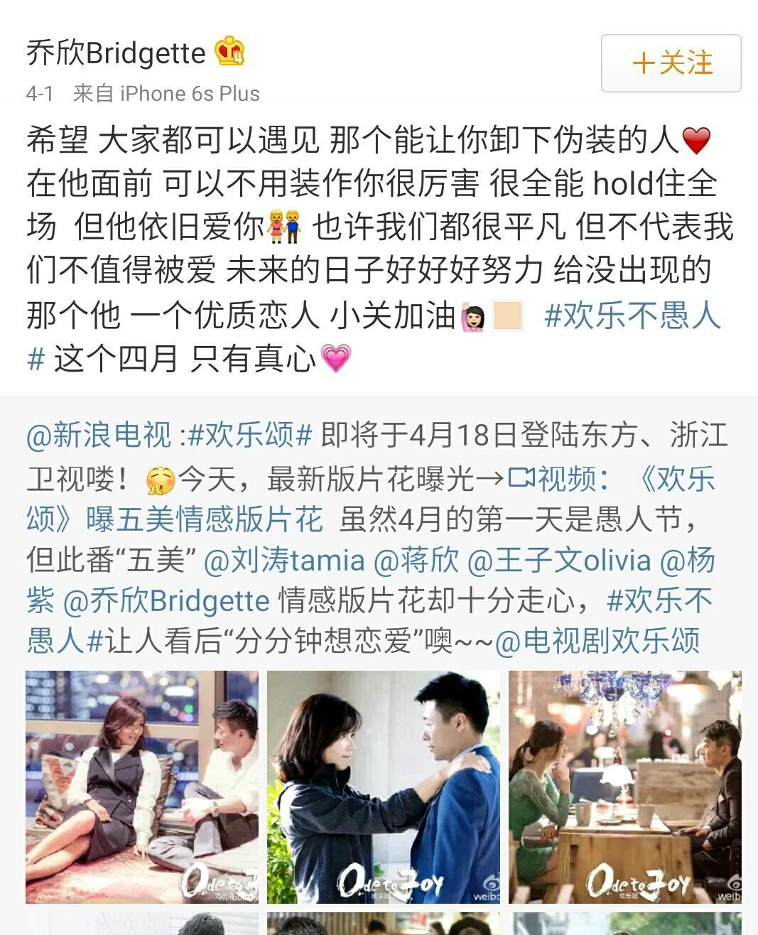 乔欣在宣传《欢乐颂》的时候发过一条关于爱情的微博,很深刻,娱记宝宝觉得那说的就是他和邵伟桐吧,邵伟桐大概就是他的优质恋人吧!