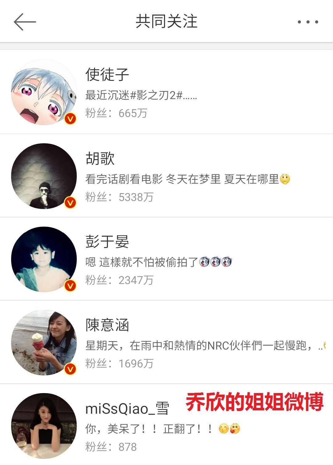 邵伟桐没有跟乔欣互相关注,却关注了乔欣的姐姐,这一点就很奇怪啊