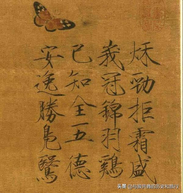 这位宋徽宗不但擅长踢球,琴棋书画,样样精通,他的书法自成一派,称为“瘦金体”,他的花鸟画相当有造诣,称为“院体”。
