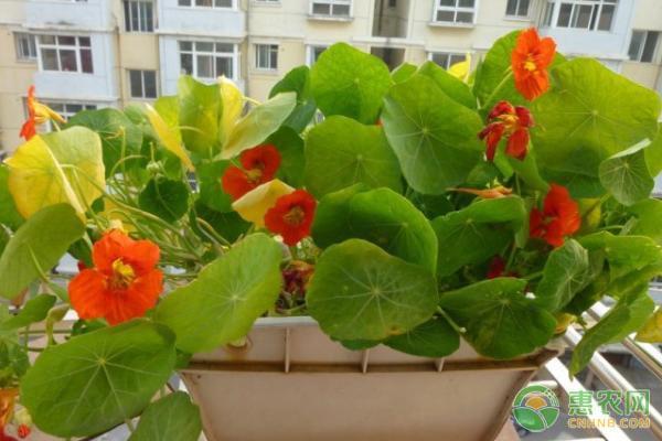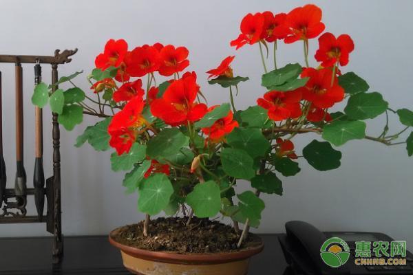 旱金莲也叫金莲花,是多年生的半蔓生或倾卧植物。花香四溢,株型独特,色彩多样,有黄色、紫免、桔红色或杂色等。如果养护得当的话,全株能同时开出几十朵花,且全年均可开花,常栽植于庭院或栽植盆栽,具有较高的观赏价值,下面小编就来介绍一下旱金莲的养殖技术及养护方法。