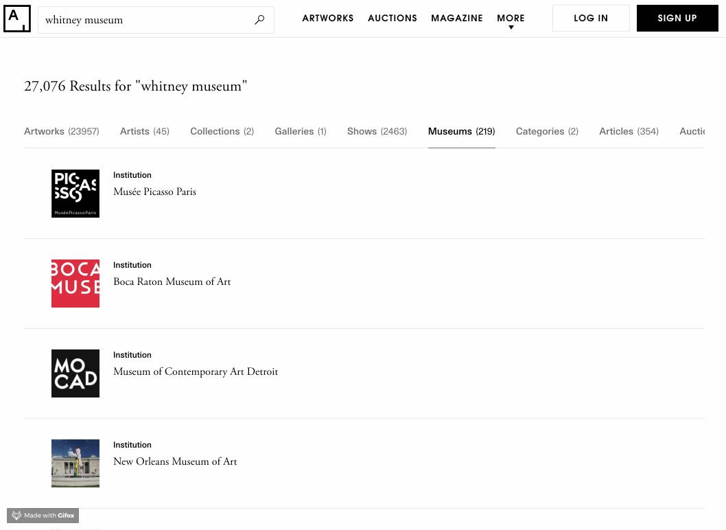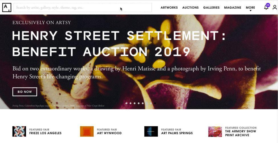 “如今,Artsy是世界上最大的艺术品网站。我们有超过5万件艺术品,它们分别来自3500家顶级画廊,并与500家博物馆合作,还有各种艺术项目…”